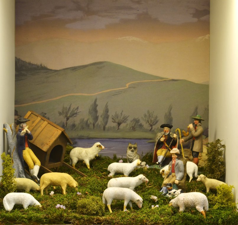 Die tönernen „Krippenschätze“ in dieser breitgefächerten Ausstellung zu zeigen ist möglich, weil der Leihgeber Erk Baumann, Sammler, Ausstellungsmacher und Eigentümer des Bamberger Krippenmuseums, aus seinem eigenen reichen und qualitätvollen Bestand schöpfen kann.